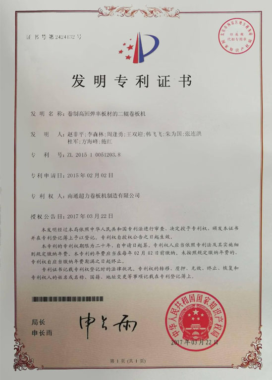 南通超力卷板機制造有限公司,國家高新技術企業,中國卷板機機床專業設計、研發與制造企業。公司承擔國家火炬計劃項目3項,《JB/T12830-2016/數控二輥卷板機》、《JBCPZT0758-2016/數控矯圓機》行業標準起草單位,中國鍛壓協會會員,擁有W10、W11和W12等出口產品質量許可證。